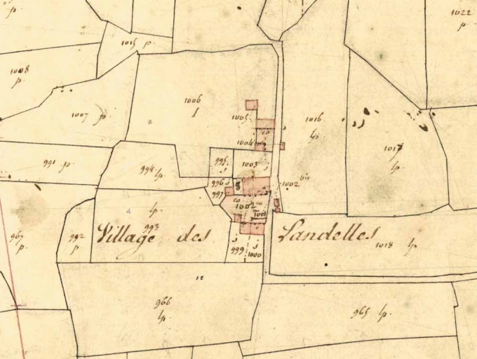 Plan géométrique parcellaire de la commune de Bais, section G4 dite de Miliac. Levée par Barbé et Chalette géomètres, [1827], échelle 1/2500e. (A.D. Ille-et-Vilaine : 3 P 5247).