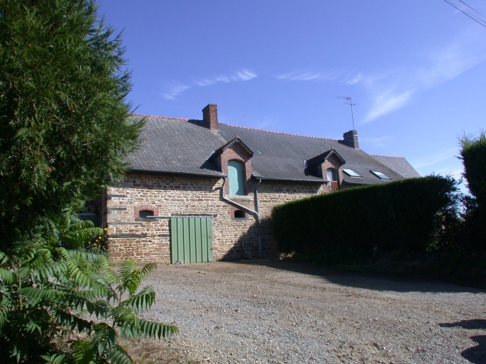 Parti bas avec lucarnes pendantes. Gros oeuvre en moellons mixte de grès, de poudingue et de schiste. Le logis était autrefois à deux pièces à feu en rez-de-chaussée, il est encadré d'étables et d'un ancien logis transformé en cellier.