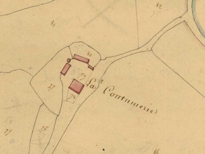 La ferme de la Coutumerie est mentionnée sur le premier cadastre de 1827. Le logis a été remanié, mais la grange mérite d'être signalée. Le volume imposant de celle-ci se démarque de l´ensemble des bâtiments agricoles de la commune. Les poteaux intérieurs de fortes sections qui montent du sol jusqu´au comble ne sont pas s´en rappeler l´ancienne structure cachée de la ferme de la Mètrie.