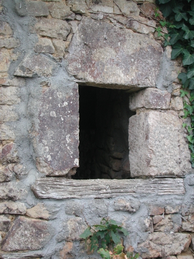 Cet ancien logis est en grès et en terre pour la partie haute de son pignon. Les ouvertures sont également en grès dont une légèrement chanfreinée. Les linteaux de la porte d'entrée et de la fenêtre chanfreinée sont en bois. L'appui de la seconde fenêtre est en bois et celui de la première en schiste ardoisier. Le pignon sud est détruit afin de pouvoir rentrer les vaches.