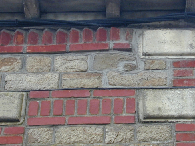 Le décor de cet immeuble réside dans l'alternance de brique et de béton peint pour les ouvertures et les chaînages d'angle. Deux bandeaux en brique soulignent les plafonds et un troisième est sous le toit.