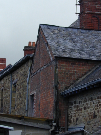 Cet ancien commerce est construit entièrement en brique. Il s'est inséré entre deux bâtiments du 19e siècle, c'est pourquoi il a une façade pignon.