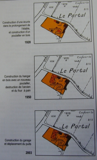 Sur le cadastre napoléonien de 1827, le logis ainsi que l'étable, l'écurie et la grange sont mentionnés. La poutraison et le volume du toit nous indiquent que le logis date du 17e siècle. Par contre, l'étable et l'écurie ont été édifiées dans le deuxième quart du 19e siècle. D'ailleurs, une ardoise portait la date de 1830 pour la grange.