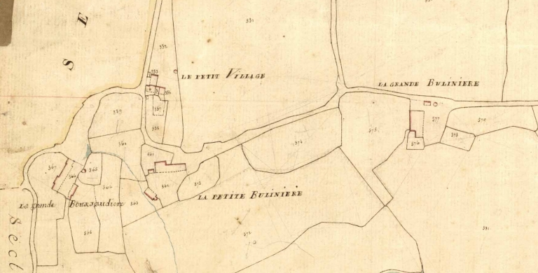 Commune de Moulins, section B2 du bourg, en 2 feuilles, 2e feuille. Levée par Roger, [s.d.], échelle 1/2500e. (A.D. Ille-et-Vilaine).