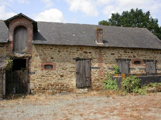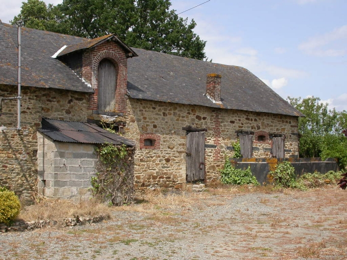 Cette ferme est constituée d'un logis en fond de cour. Il possède un cellier dans un appentis postérieur ; une étable et une porcherie sont accolées à l'est. Ces deux dépendances possèdent des encadrements de baies en brique, les portes présentent des linteaux en schiste ardoisier. Il existe une cheminée dans la porcherie, celle-ci est destinée à la cuisson de la nourriture des cochons. A l'avant de cette porcherie, il existe un enclos fermé par de grandes dalles de schiste ardoisier. La partie est de la façade est percée de baies possédant des linteaux débillardés et des montants en pierre ; la partie ouest possède des baies à encadrements de brique. Ce logis est composé de deux pièces à feu. Une remise en pans de bois se trouve au sud-ouest du logis.
