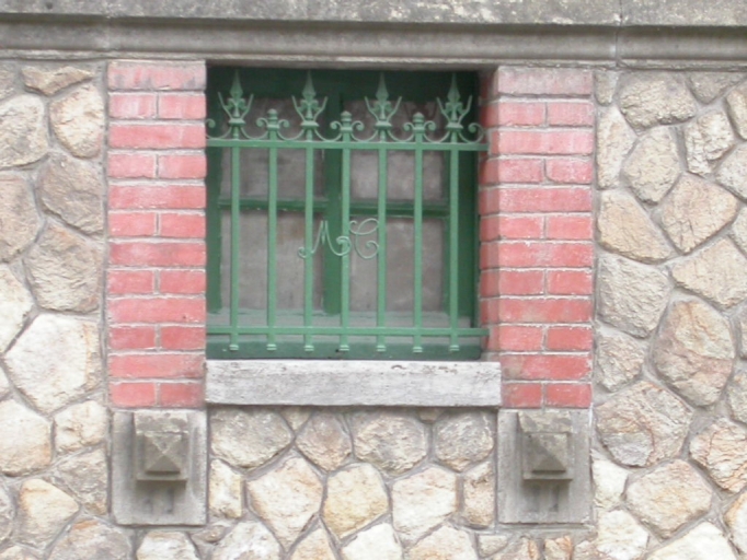 La maçonnerie de ce bâtiment est constituée de microdiorite de quartz ; le toit à longs-pans est couvert d'ardoise. L'appareillage est différent selon les niveaux, au rez-de-chaussée et pour le surcroît, il s'agit de moellon à tête dressée alors que l'étage est appareillé en pierre de taille. Il existe un décor de brique et de fausses pierres moulées en ciment sur la façade : encadrements de baies, chaînages d'angles... Un cartouche porte la date de réalisation de la maison au centre de la façade : 1928. La grille de la baie du rez-de-chaussée porte les initiales suivantes : "M. C.".