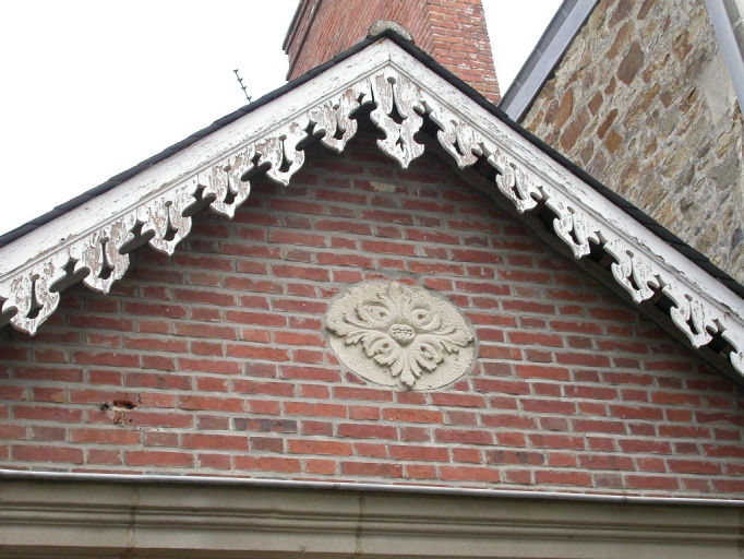 Cet ensemble est composé d'un bâtiment de type ternaire en fond de cour et de deux pavillons latéraux. Les pavillons possèdent une façade sur rue en brique et en tufeau. Les encadrements et les chaînages sont en bossage en tufeau. De plus, il existe un lambrequin de toit sur ces deux bâtiments. Le corps de bâtiment principal possède une façade en brique avec encadrements, chaînages et corniches en bossage en tufeau. La façade postérieure et les pignons sont élevés en moellon de microdiorite de quartz et les encadrements de la façade arrière sont en brique. Le toit à croupes de cette construction est couvert d'ardoise et surmonté d'épis de faîtage. Le décor autour des ouvertures de la façade sur rue est très abondant, notamment sur la lucarne centrale surmontée d'un fronton triangulaire et décorée de volutes. Sous la corniche, un bandeau de tufeau porte l'inscription "BANQUE DE BRETAGNE".