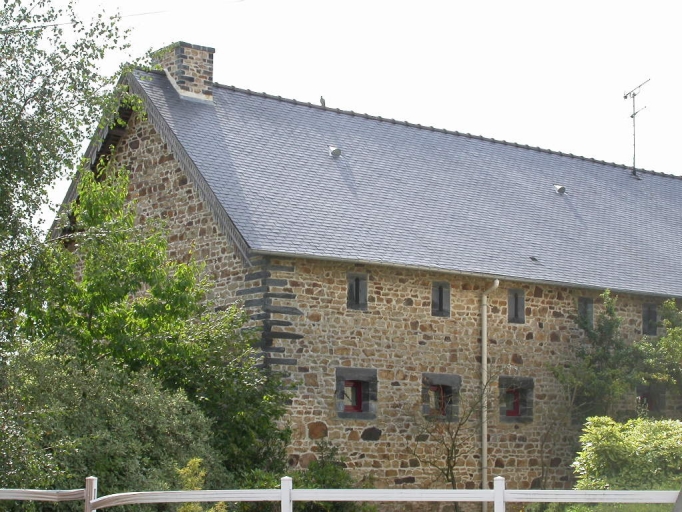 Comme l'indique la date qu'elle porte, cette étable a été construite en 1887. Ce bâtiment dépendait de la maison construite à l'est. Les ouvertures du rez-de-chaussée ont été fortement remaniées. En effet, comme le montrent des photographies de 1994, il n'existait primitivement qu'une porte centrale au dessous de la lucarne datée ; les autres ouvertures étaient de simples jours en schiste ardoisier.