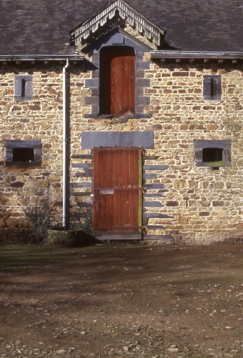 Ce bâtiment est élevé en moellon de schiste et de microdiorite de quartz. Les encadrements et les chaînages d'angle sont en schiste ardoisier. Il existe un lambrequin de toit sur le pignon nord. La façade principale est la façade Est, elle est percée d'une travée centrale composée d'une grande porte surmontée d'une porte haute pendante, toutes deux encadrées de schiste ardoisier. La porte haute pendante est surmontée d'un fronton triangulaire portant un cartouche avec l'inscription suivante : A. N. /1887. Elle est surmontée d'un lambrequin de toit en bois, comme le pignon nord. Sur cette façade, il existe de nombreux jours en schiste ardoisier permettant d'aérer et d'éclairer le grenier.