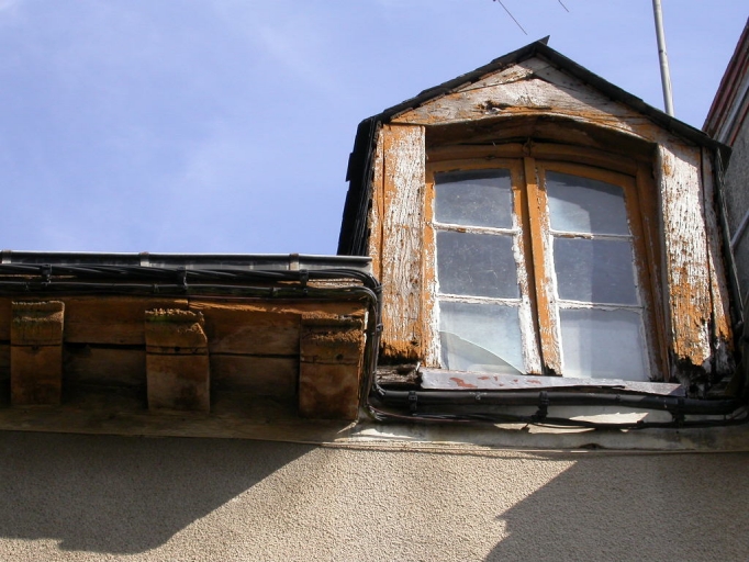 Cet alignement de deux maisons est enduit ; la toiture est couverte d'ardoise. La partie Est possède un porche en rez-de-chaussée et des baies à linteaux cintrés en bois à l'étage. Les baies de l'étage de la partie ouest possèdent des encadrements de brique. Une corniche composée de corbelets en bois sculptés existe tout le long de la façade.