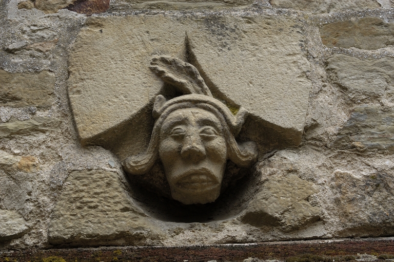 La construction de cette maison remonte, selon toute vraisemblance, au 18e siècle comme en témoignent le décor des corbelets de la corniche, les linteaux débillardés des baies... Il est difficile de dire comment était organisé le rez-de-chaussée car la porte donne accès à une cour postérieure dans laquelle se trouvent d'autres constructions et la partie sud de la façade est percée d'une grande ouverture qui n'existait vraisemblablement pas à l'origine. Au dessus de cette grande baie, se trouve une figure grimaçante surmontée d'une accolade. Cette figure proviendrait d'une ancienne chapelle aujourd'hui disparue.