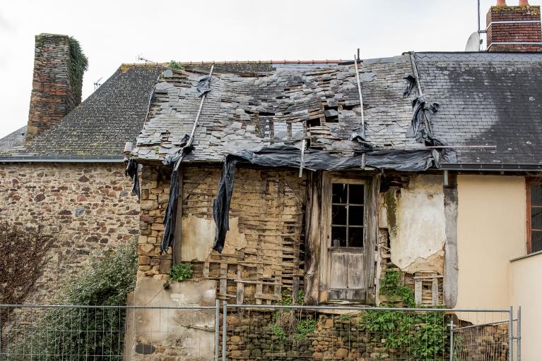 Sur une carte postale de la fin du 19e s. - début du 20e s., la façade est enduite mais l'on distingue à l'étage des pigeâtres sculptés qui n'existent plus aujourd'hui. Le porche se prolongeait jusqu'au 10 rue d'Anjou par une partie en pan de bois disparue.