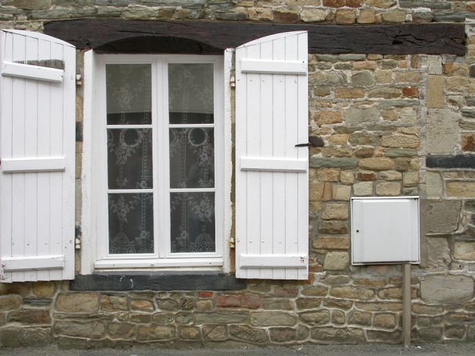 Ce bâtiment est élevé en moellon de microdiorite de quartz et de schiste ; il est couvert d'un toit à longs-pans en ardoise. Il existe des cheminées sur chaque pignon. La façade sur rue est percée de trois travées. Les ouvertures du rez-de-chaussée possèdent des appuis en schiste ardoisier et des linteaux en bois débillardés. Les baies de l'étage présentent des encadrements de pierre calcaire. La maison est double en profondeur ; la partie sur rue est composée de deux pièces inégales, celle du nord est plus vaste. La partie arrière du bâtiment abrite un escalier dans la partie centrale.