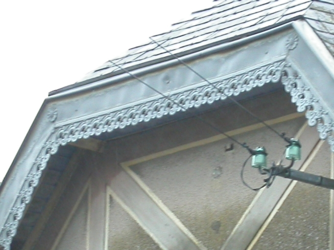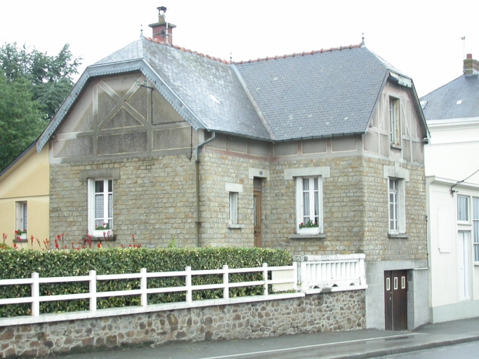 Cette maison est élevée en microdiorite quartzique et en faux pan de bois pour les têtes de pignon. Les ouvertures ont des linteaux et des appuis en ciment. La toiture à demi-croupe est décorée de lambrequins de toit en zinc.