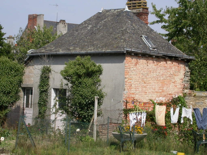 Cette maison recouverte d'un enduit en façade est construite en moellon de microdiorite quartzique et de schiste et a une toiture à croupe. A l'arrière, les encadrements des ouvertures sont en brique.