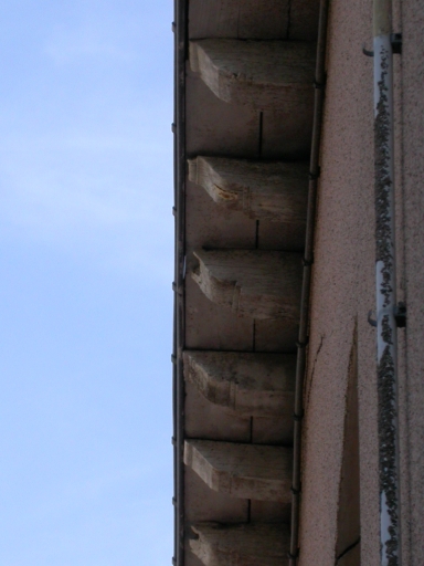 Cette maison présente plusieurs éléments qui permettent de la dater du 18e siècle : la poutraison, le coyau de la toiture, la charpente, la corniche en bois. A l'intérieur, il y a un décalage de niveau, cependant le bâtiment semble avoir été construit en une seule fois. Une partie de cette maison est occupée depuis le 19e siècle par une pharmacie, le reste du rez-de-chaussée et l'étage servent de logement.