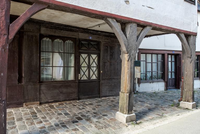 Maison à gouttereau sur rue et porche à trois travées. La profondeur du porche est de 2m50 environ et les écarts entre poteaux sont de 2m75 en moyenne. La hauteur sous sablière atteint 2m65. Les poteaux sont chanfreinés sur les 4 angles. Des aisseliers soutiennent la sablière et comportent des marques d'assemblage.