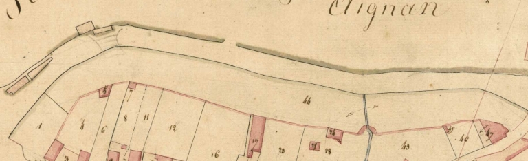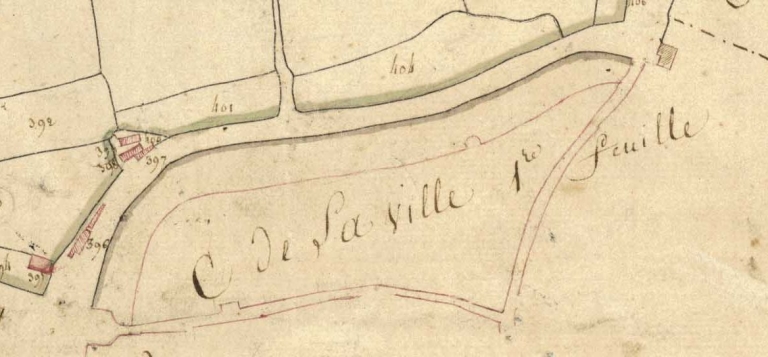 Commune de La Guerche. Section C1 de la Ville de La Guerche en 3 feuilles, 1re feuille. Levée par M. Garnier, Géomètre, [1827], échelle 1/1250 e. (A.D. Ille-et-Vilaine).