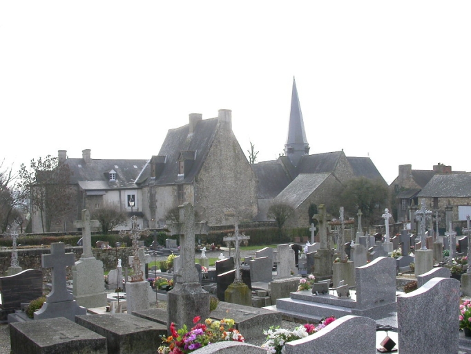La grille d'entrée du cimetière porte la date de sa réalisation : 1889. Contrairement à d'autres communes du département où le cimetière a été transféré à l'extérieur du bourg, à Gahard, il semble que le cimetière ait conservé son emplacement originel. En effet, il se trouve au nord-est de l'église et de l'ancien prieuré. Des documents d'archives rapportent que le mur de clôture a été restauré en 1892 et qu'un nouveau cimetière a été crée en 1923. Toutefois, même si un nouveau cimetière est crée à cet date, il conserve l'emplacement de l'ancienne car le cadastre de 1828 témoigne de l'ancien cimetière au même endroit que le cimetière actuel. Certaines tombes sont d'ailleurs relativement anciennes, prenons en pour preuve celle de la famille Perrussel dont l'un des représentants Mathurin est né en 1767 et décédé en 1826. Il semble que cet homme ait été avocat, l'inscription porté par la base du monument en témoigne. D'autre part, il était procureur fiscal de la juridiction de Gahard entre 1784 et 1790.