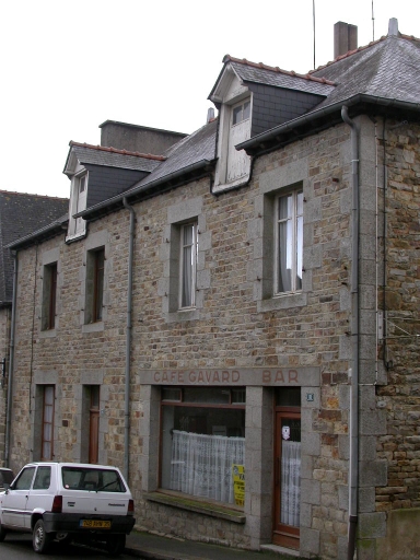 Ce bâtiment d'angle est construit en moellon de grès et couvert d'ardoise. Les baies des deux façades possèdent des encadrements de granite et de bois. La façade sur rue témoigne de l'existence d'un commerce à cet endroit, plus précisément d'un café. Par ailleurs, le bâtiment s'élève sur trois niveaux ; il possède en effet un rez-de-chaussée, un étage et un comble à surcroît.