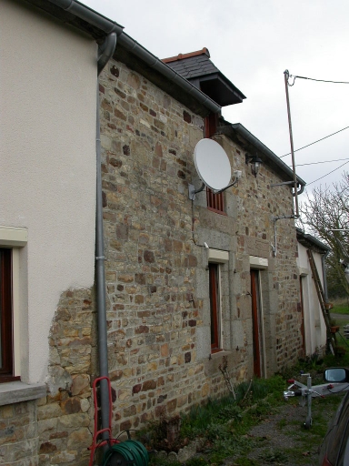 Ce bâtiment est construit en moellon de grès et en terre enduite. Il est couvert d'ardoise et possède des baies à encadrements de granite. Le logis est situé dans la partie est alors que les dépendances, étable et grange, se trouvaient à l'ouest. Sur certains linteaux des baies du logis, il existe des inscriptions, notamment : H : F : 1818 et 1668 sur la façade nord.