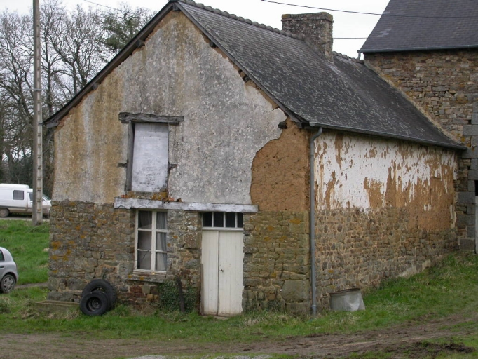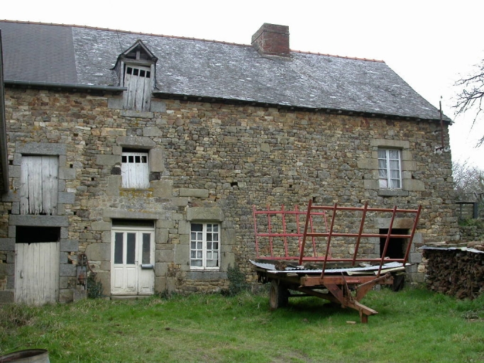 Cette ferme est composée de plusieurs bâtiments. Le logis est situé au nord, il possède une maçonnerie de moellon dans laquelle il existe des remplois. Le pignon ouest a été remonté en parpaings suite à son écroulement. Les baies de ce logis ont des encadrements de granite chanfreinés et la fenêtre du rez-de-chaussée possède même un linteau décoré d'une accolade. Un cellier se trouve dans un appentis postérieur au logis. Perpendiculairement au logis, au sud-ouest, il existe un bâtiment construit en terre sur un solin de moellon de grès équipé d'une cheminée. Face au logis, au sud, se trouve un bâtiment en moellon de grès réservé au dépendances.