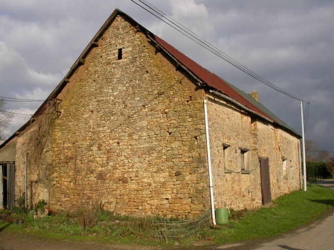 Ce bâtiment est construit en moellon de grès, toutefois la pente de toit a été redressée et les murs surélevés en terre. La toiture est couverte d'ardoise et le comble à haut surcroît est percé de deux portes hautes. Une porte en plein cintre en granite a été remployée en façade postérieure. Un four se situe à l'ouest et un bâtiment servant d'étable se trouve à l'est, parallèlement à la route.