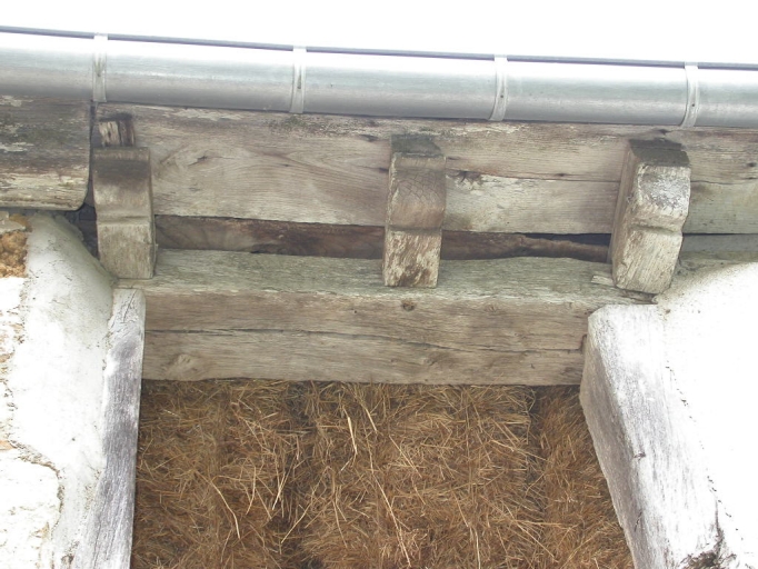 Ce bâtiment est construit en moellon de grès et en terre enduite. Il possède des encadrements de baies en granite ; les baies de l'étage ont des linteaux en bois cintrés. La partie ouest correspond au logis alors que la partie est abrite une dépendance. La partie dépendance en terre enduite possède une corniche composée de corbelets en bois sculptés.