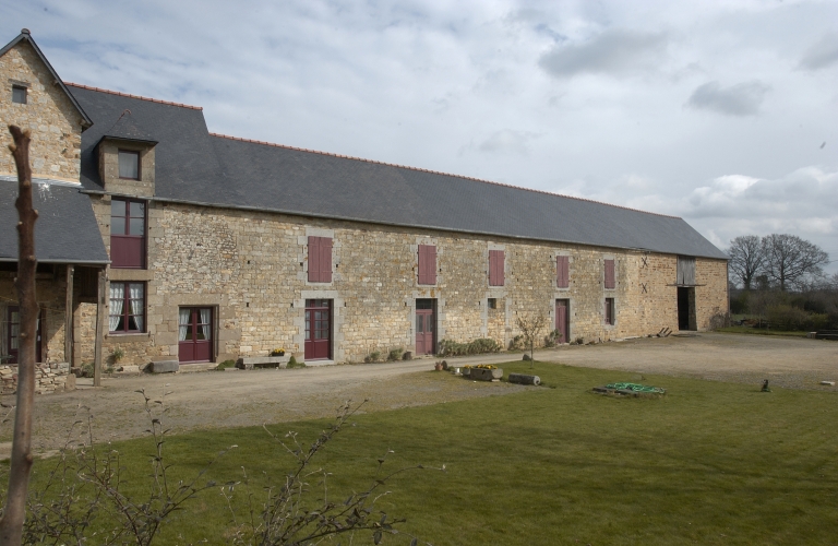 Cette ferme est composée de constructions de taille très importante. La logis est situé au nord ouest de la cour ; il est construit en moellon de grès, possède des encadrements de baies en granite et est couvert d'ardoise. Dans l'alignement du logis, à l'est, s'élève un long bâtiment en moellon de grès également couvert d'ardoise. Les percements de ce bâtiment sont très réguliers et sont encadrés de granite. Une écurie, un cellier et une grange se trouvaient dans ce bâtiment, d'ouest en est. Une étable en moellon de grès se trouve au sud-est de la cour ; elle possède des baies aux linteaux cintrés en bois. Enfin, au sud-ouest, il existe un bâtiment couvert d'un toit en pavillon qui abrite trois fonctions distinctes : fournil, porcherie et poulailler en partie supérieure.