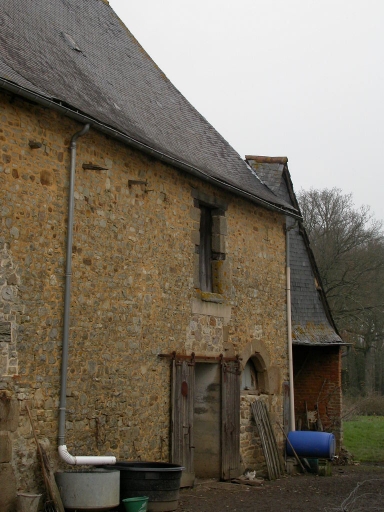 Ce bâtiment est élevé en moellon de grès et couvert d'ardoise. La pente de toit est importante et il existe un coyau. La majorité des baies présente des encadrements de granite et certains linteaux sont en bois. A l'est, il existe encore une porte en plein cintre en granite. Il existe deux cheminées dans ce bâtiment, l'une d'entre elles est située sur le pignon ouest. Le manteau est décoré d'une corniche et les corbeaux sont en granite. Au sud, il existe un bâtiment en terre qui abrite une grange et un cellier, une porte distincte donne accès à chaque partie. A l'ouest du logis, se trouve une petite laiterie et un puits.