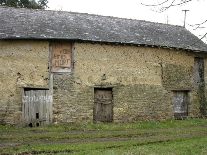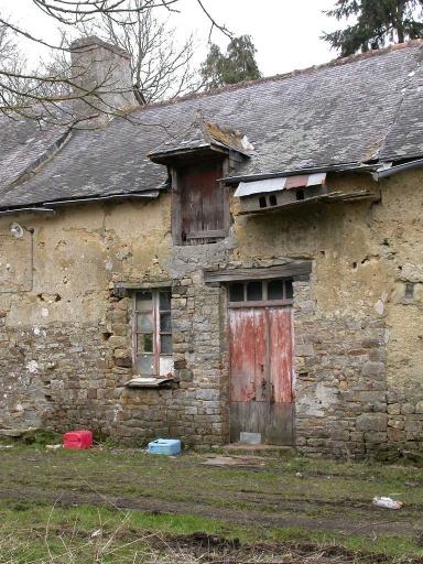 Cet alignement est élevé en terre sur un solin plus ou moins haut en moellon de grès. La toiture est couverte d'ardoise et le comble à surcroît est percé de portes hautes et de portes hautes pendantes. Il existe deux pièces à feu en alignement, les deux souches de cheminées indiquent leur position dans l'alignement. La partie est abrite plutôt les dépendances. Un puits se trouve au sud, face à l'alignement.