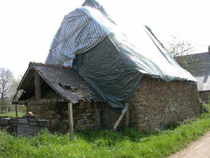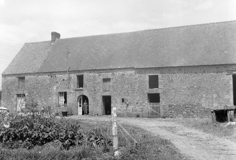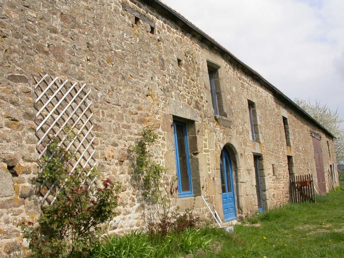 Ce bâtiment témoigne d'une maçonnerie en moellon de grès et de granite et d'une couverture d'ardoise. Il possède des encadrements de baies et des chaînages d'angle en pierre de taille de granite. Certaines baies possèdent des formes particulières, c'est le cas de l'une des portes qui est une porte en plein cintre. Près de celle-ci, il existe une porte dont le linteau droit est chanfreiné et porte la date de 1638. Des trous de boulins, destinés à l'accueil d'un couple de pigeons, sont percés dans la façade, en partie supérieure. Un cellier existe dans un appentis postérieur à la partie ouest du bâtiment. Il existe un fournil à l'arrière et des porcheries au sud-ouest.