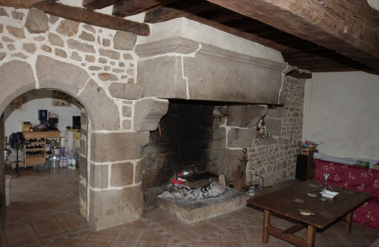 La partie la plus ancienne de cet ensemble est sans conteste la partie centrale, là où se trouve la porte en plein cintre. La porte située près de celle en plein cintre porte d'ailleurs la date de 1638 sur son linteau. Sont caractéristiques de cette époque de construction, les portes en plein cintre et les cheminées monumentales en granite notamment. Il existait une chambre à l'étage, au dessus de la pièce à feu du rez-de-chaussée. Cette chambre était d'ailleurs éclairée par une fenêtre possédant un appui saillant, ce qui constitue également un élément permettant de confirmer la datation du début du 17e siècle. La partie centrale était vraisemblablement un logis étable ; le logis correspondait à la partie dont l'accès se fait par la porte en plein cintre et l'étable était accessible par la porte à linteau droit qui se trouve à proximité. La partie est forme un autre ensemble qui était en réalité une autre propriété, notamment lors de la réalisation du premier cadastre de la commune vers 1830. Cette partie abritait probablement une ferme car il y existe une grange ; le logis est situé à l'extrémité est.