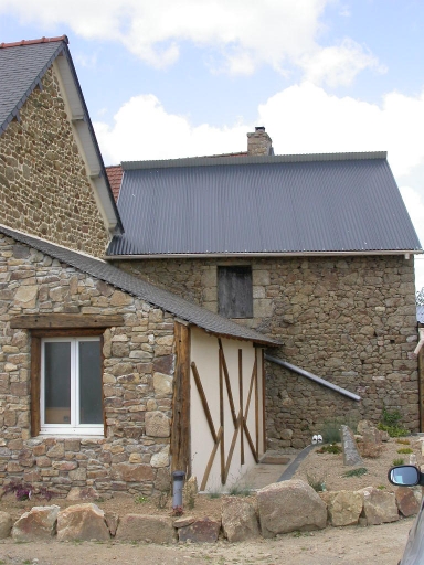 Ce bâtiment en moellon de granite possède une toiture à longs pans couverte d'ardoise. Les encadrements de baies sont en pierre de taille de granite ; en partie centrale, certains sont chanfreinés. L'ensemble possède un comble à surcroît dont l'accès se fait par des portes hautes. La partie est, en retrait par rapport à l'alignement principal possède une cheminée à l'étage, sur le pignon est.