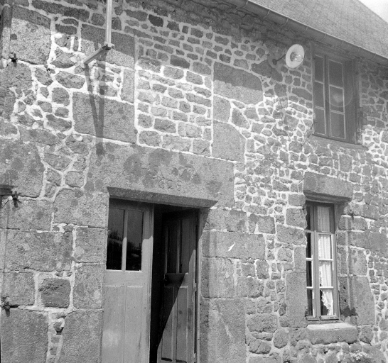 La construction de ce logis remonte à 1628, cette date est portée sur l'un des linteaux de la façade. Cette date est surmontée du monogramme du Christ (IHS) et de celui de la Vierge (MA). IHS est une abbréviation du nom de Jésus écrit en grec : I et H sont les premières lettres, le S est la dernière lettre de SOUS, ce qui donne IH-SOUS, le h se prononçant e. Par la suite, on a donné une autre interprétation à l'inscription IHS, celle d'une abréviation de Iesus Hominum Salvator en latin, qui signifie Jésus Sauveur des Hommes. Ce logis était composé de trois pièces à feu, deux au rez-de-chaussée et une à l'étage. Les deux cheminées en granite du rez-de-chaussée datent du début du 17e siècle, notamment celle du pignon ouest qui porte des visages sculptés, décor caractéristique du début du 17e siècle. L'étage semble avoir été aménagé plus tard car il n'existe qu'une pièce à feu à l'ouest, la cheminée est en bois et la porte donnant accès à cette pièce est une menuiserie qui présente une mouluration du 18e siècle. Lors d'une enquête de pré-inventaire dans les années 1970, il est fait mention de l'existence d'une porte en bois datée 1736, il pourrait s'agir de celle-ci. Lors de la réalisation du premier cadastre de la commune, vers 1830, ce bâtiment était divisé en deux propriétés différentes. Le fournil et l'étable sont des constructions de la seconde moitié du 19e siècle, ils n'existaient en effet pas encore lors de la réalisation du premier cadastre vers 1830.