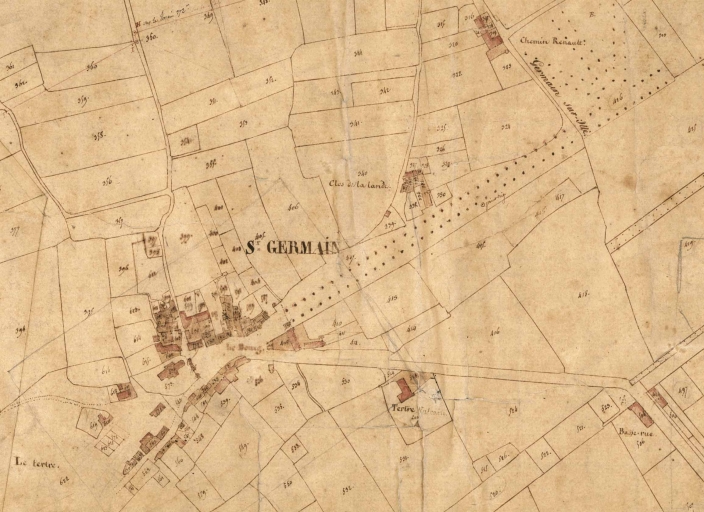 Au début du 19e siècle, au moment de la levée du premier cadastre en 1828, le village n'était composé que d'une vingtaine de maisons, principalement situées au nord et à l'est de l'église. De nombreuses constructions du village actuel datent du milieu et de la seconde moitié du 19e siècle. Le développement du village à cette époque est vraisemblablement une des conséquences de la réalisation du canal d'Ille et Rance et de l'arrivée du chemin de fer dans la commune. De plus, à cette époque, l'activité des carrières de la commune est florissante, ce qui permet de disposer de la matière première nécessaire à la construction de nombreux bâtiments.