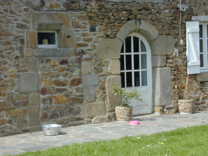 La porte en plein cintre et la maçonnerie indiquent un logis du 17e siècle. Sur le cadastre napoléonien de 1828, quatre fermes accolées sont représentées. Il est possible que les parties à droite et à gauche du logis aient été des habitations.