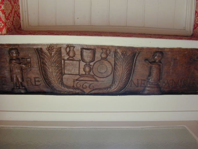 Sur le cadastre napoléonien de 1828, un porche est dessiné entre les deux pièces à feu. La porte d'entrée date du 17e siècle. Le bois sculpté qui est un réemploi est daté de 1666. Cette maison a donc été construite dans la deuxième moitié du 17e siècle et modifiée à la fin du 19e siècle. Selon la tradition orale, c'était l'ancien presbytère.