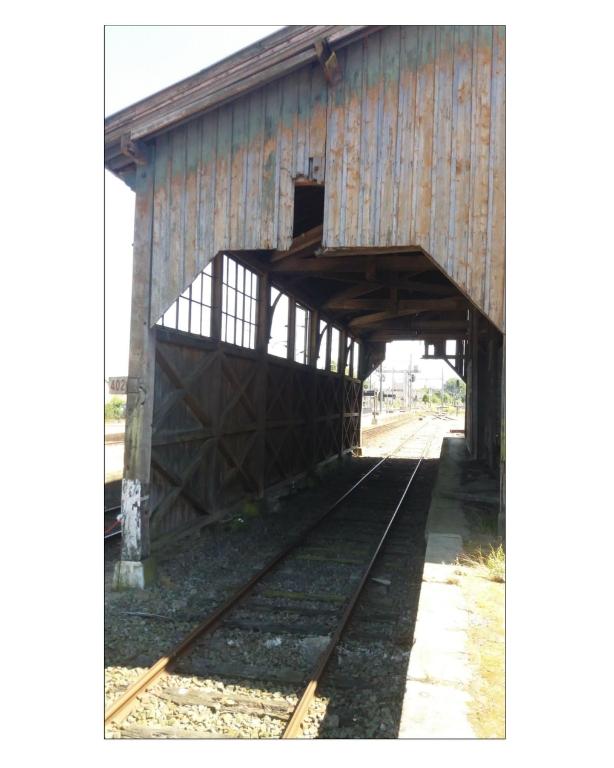 Le pan coupé du quai permettait la rotation et le triage des wagons sur une plaque tournante. Ce procédé de triage des wagons était possible sur les 1ères générations de wagons (entre-axe court entre les essieux) ; avec l’allongement des wagons, les plaques tournantes sont abandonnées au profit d’autres systèmes de tri (pour des raisons de sécurité évidentes, les locomotives – à vapeur – ne rentraient pas sous la halle), et sans doute de l’embranchement secondaire aménagé en amont et en aval de la halle.