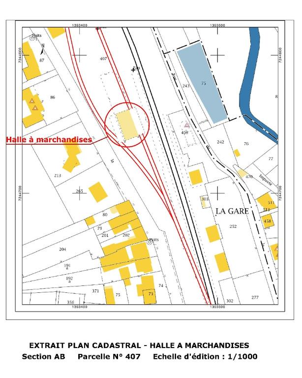 Désaffectée depuis quelques années, la halle a néanmoins été conservée sur site. La Municipalité envisage son déplacement et sa réutilisation sur un terrain proche en vue de nouveaux usages (marché couvert, activités socio-culturelles, lieu de convivialité…).