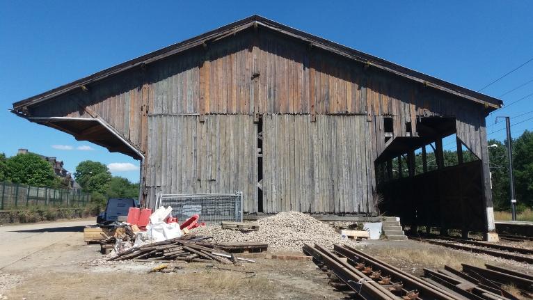 La halle à marchandises était utilisée pour les échanges de fret entre transport ferroviaire et routier. Elle comprend un espace de stockage (au centre), de chargement et déchargement des marchandises (de chaque côté).