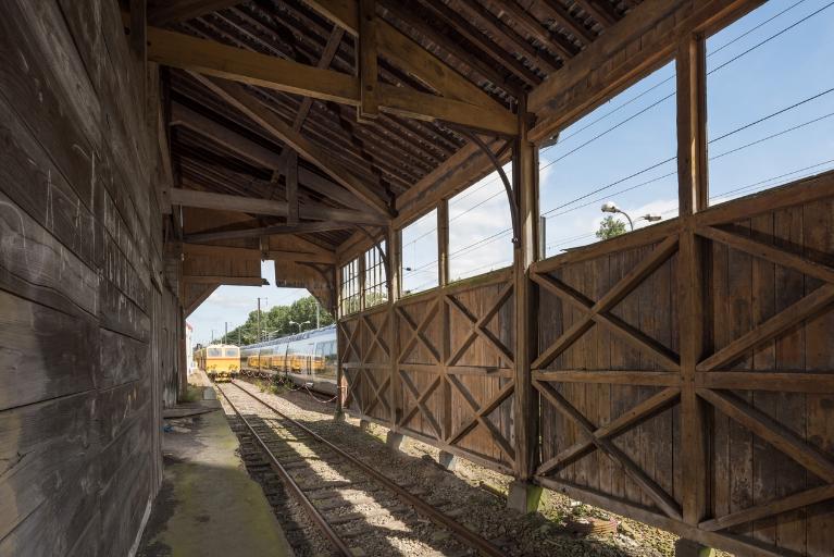 La halle et son quai sont insérés dans une structure de voies et plaques tournantes à lire en regard des premières décennies de l’activité ferroviaire.