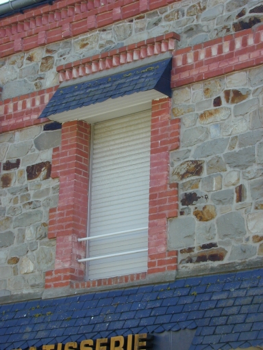La décor réside dans l'emploi de brique de couleur pour les ouvertures de l'étage, le bandeau et la corniche.