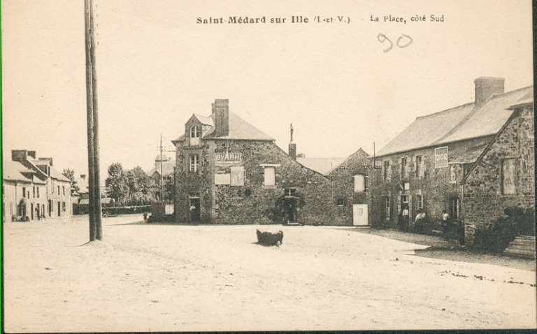 Saint-Médard-sur-Ille (I.-et-V.). La Place côté sud. Carte postale. [s.d.] (Collection particulière M. et P. Fontaine).