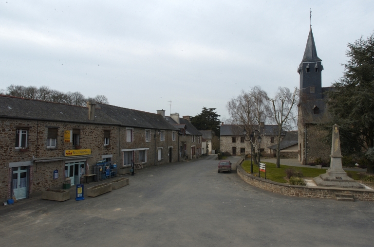 Le bourg est situé sur un éperon rocheux dominant la vallée de l'Ille. Les maisons du bourg se sont développées selon un axe principal ouest-est le long de la grande rue, mais la rue s'élargit au niveau de l'église pour former ainsi une place. La maison la plus ancienne est sans doute celle située au sud de l'église, au n°6, remontant à la fin du 16e siècle. Le cadastre napoléonien représente une quarantaine de constructions concentrées autour de l'église et le long du Roquet. Les maisons construites à partir du 19e siècle de type normalisé donnent au bourg un aspect homogène.