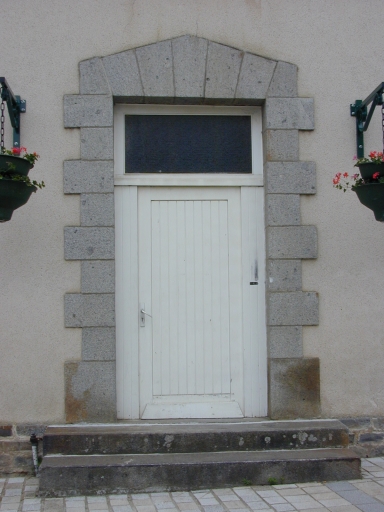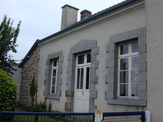 L'ancienne mairie-école présente un plan en T. Elle est enduite et est couverte d'un toit à croupes en ardoise. La façade sur rue de la maison est percée de trois travées. Les encadrements des ouvertures sont en granite bleu. La salle de classe située en façade arrière est éclairée par deux fenêtres et une porte sur chaque mur gouttereau.