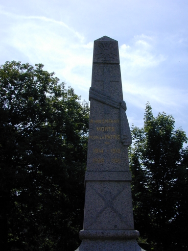 Ce monument aux morts est réalisé en granite. Il est décoré d'une croix et d'une écharpe. Il porte les inscriptions suivantes : A NOS ENFANTS / MORTS / POUR LA PATRIE / 1914-1918 / 1939-1945.