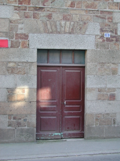 La façade sur rue de cet immeuble est percée de quatre travées de portes et fenêtres et d'une portes d'entrée centrale. Les encadrements des baies sont en pierre de taille de granite. Le linteau de la porte principale est surmonté d'un arc de décharge.