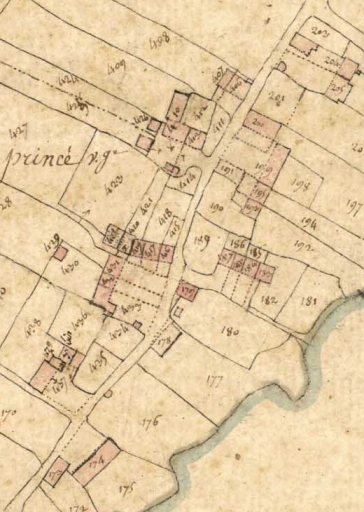 Suite à la constitution de la commune d'Andouillé-Neuville à la Révolution, le village d'Andouillé s'est formé au cours des 19e et 20e siècles entre l'ancien bourg restreint aux abords de l'église paroissiale et l'écart de Princé disposé au sud le long de la route de Saint-Aubin-d'Aubigné, par l'agglomération de plusieurs ensembles (la Boulangerie, les Croisettes, le Presbytère). Malgré la construction de bâtiments communaux, la mairie-école (actuelle école primaire) au nord-ouest de l'église et l'école (actuelle mairie) dans la 2e moitié du 19e siècle et au début du 20e siècle, le bourg actuel conserve une morphologie éclatée, sans caractère aggloméré.
