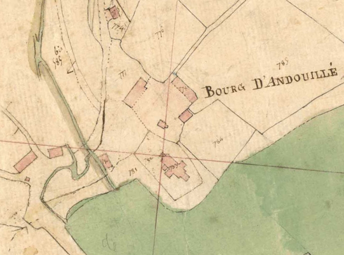 Commune d'Andouillé-Neuville. Section B dite d'Andouillé en trois feuilles, deuxième, plan cadastral, [Cheval père géomètre], 1827 (A.D. 35).